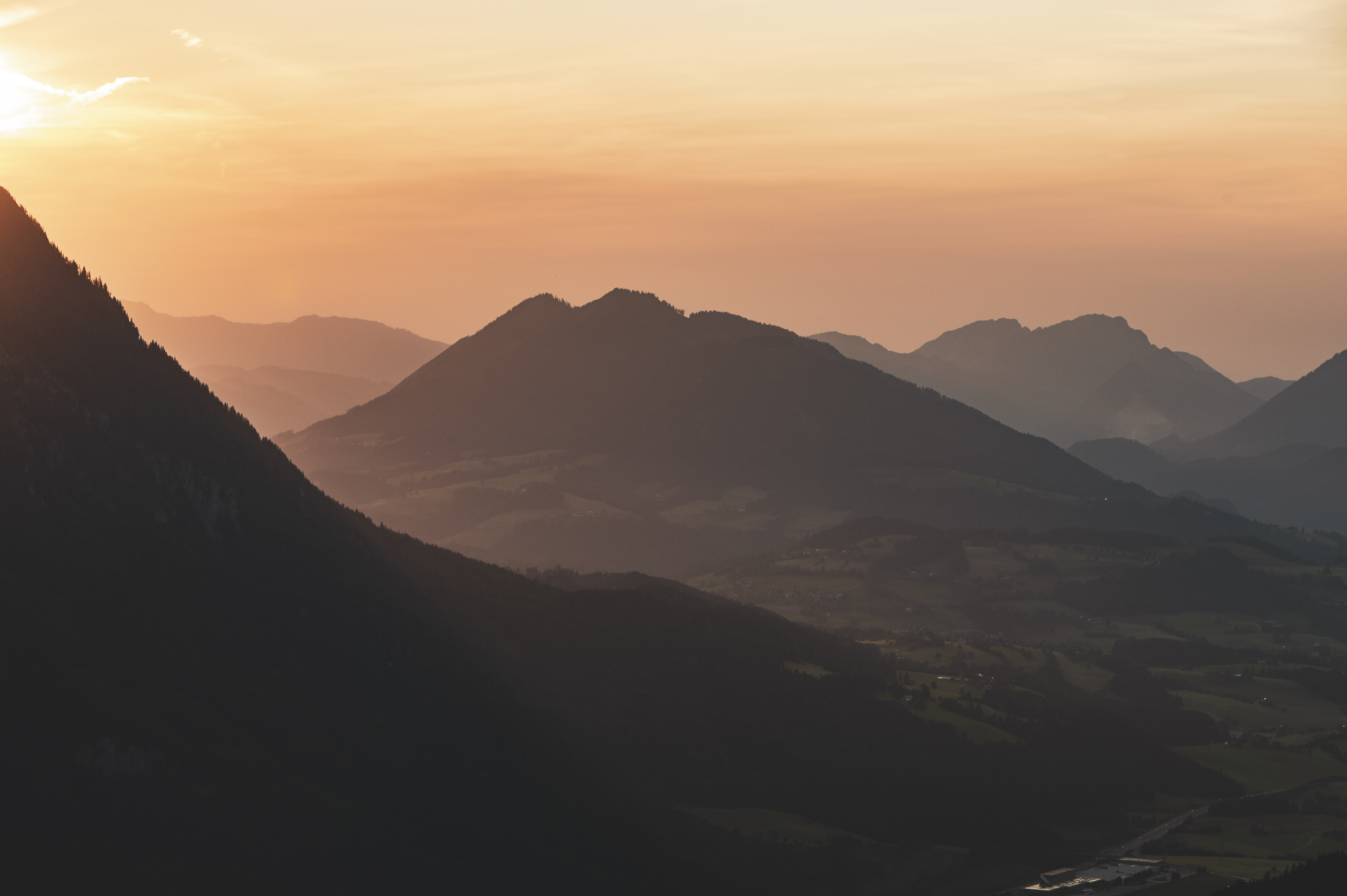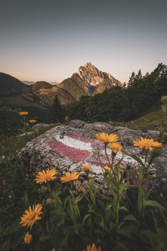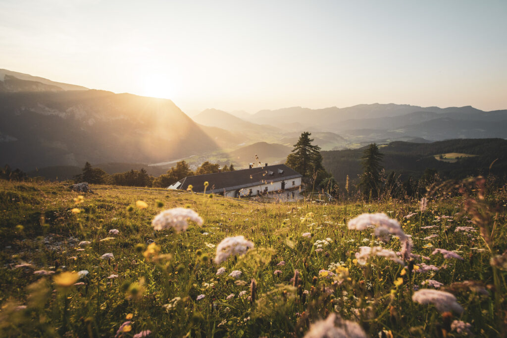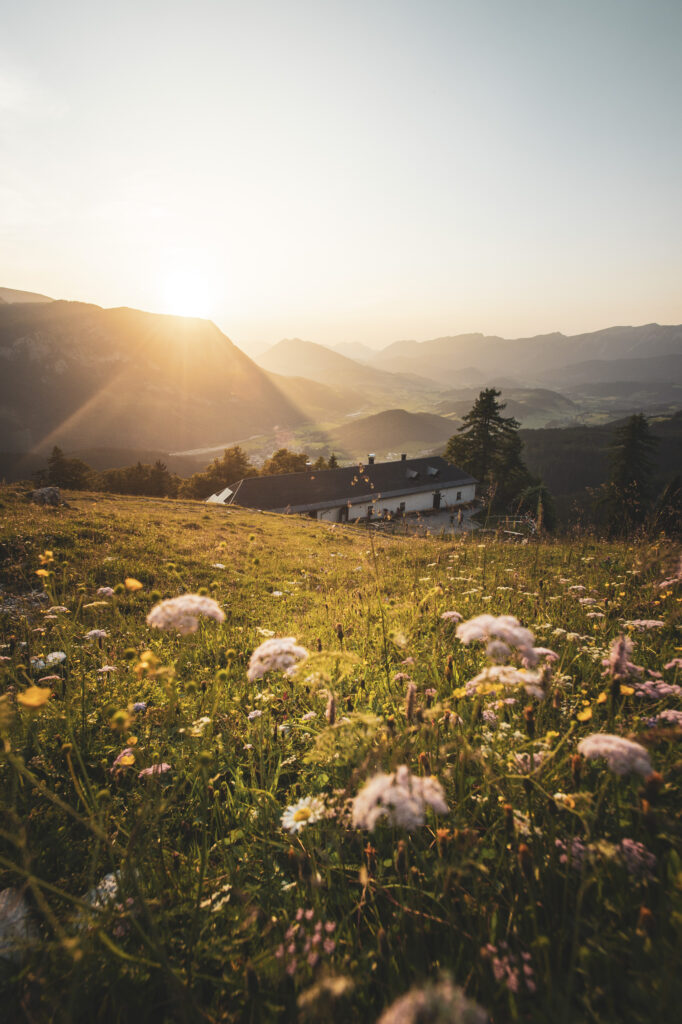 Wandern in den Ennstaler Alpen – Vom Sonnenuntergang bis zum Sonnenaufgang auf der Hofalm am Fuße des Großen Pyhrgas in Oberösterreich, Österreich.